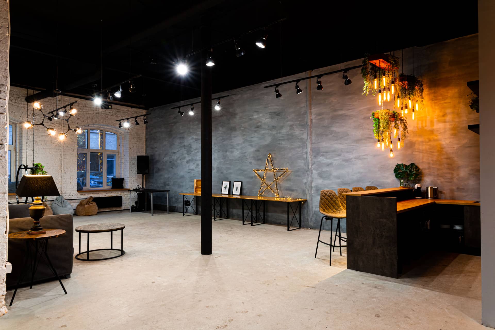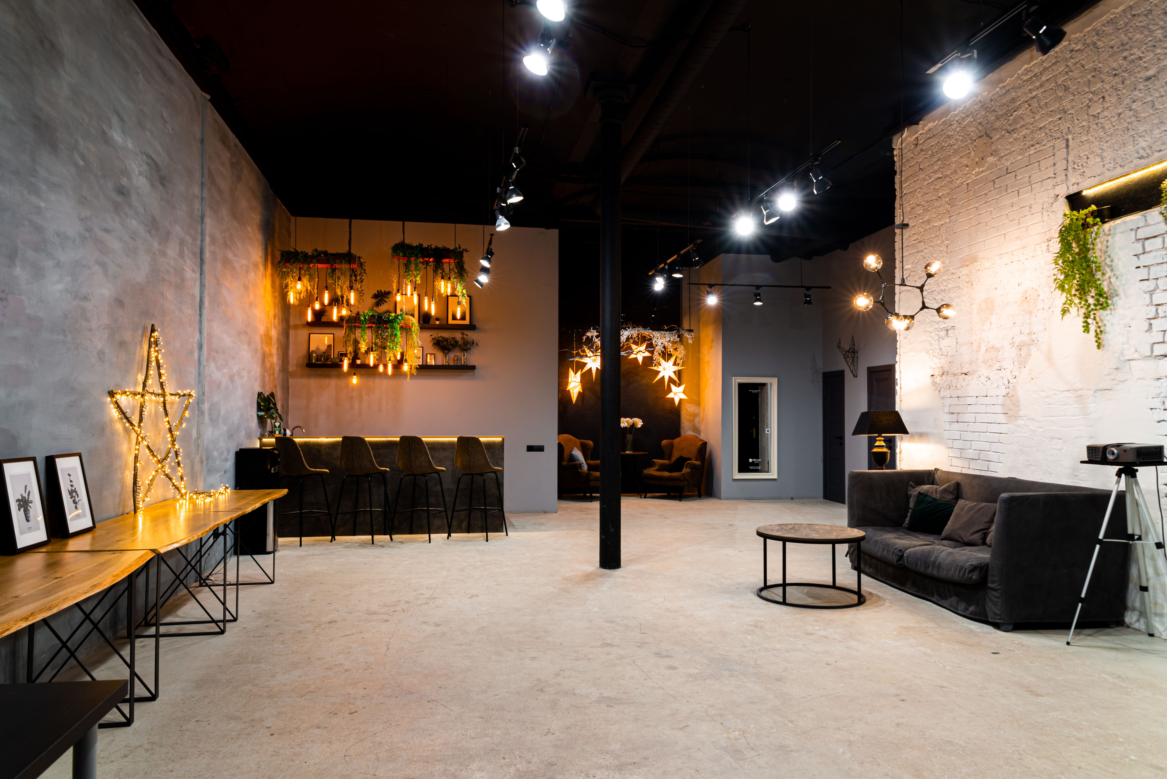Отличный лофт, свет, музыка, бармен, кухня, вариаций масса, сидя стоя — как угодно.