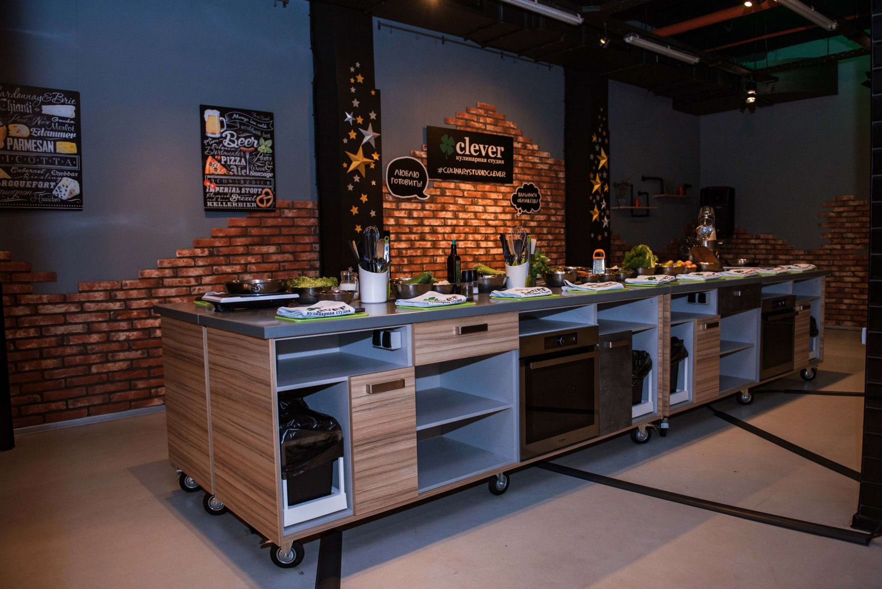 3 кулинарные студии разной площади и интерьера